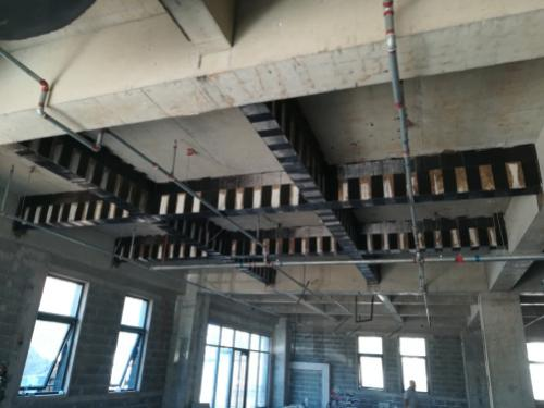 碳纤维布U型箍锚固:板底粘贴碳布后,两端延伸至板顶≥200mm形成封闭锚固。